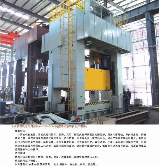 公司能夠為市場提供42大類500余個品種的標準液壓機和非標專用、精密伺服液壓機。產(chǎn)品廣泛應用于汽車、航天、粉末冶金、船舶、輕工、建筑、電子、家用電器等行業(yè),并代表著我國通用液壓機的發(fā)展水平。公司生產(chǎn)、設計、開發(fā)的液壓機產(chǎn)品完全能夠滿足國內(nèi)不同用戶多層次的需要。